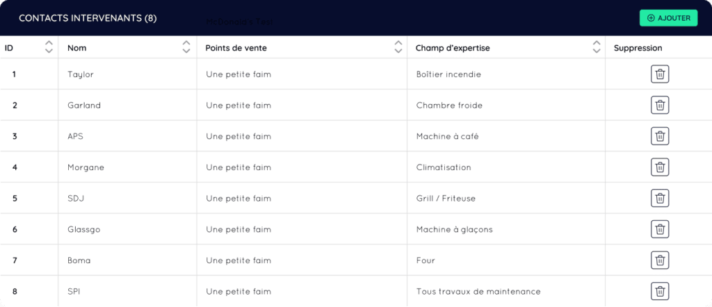 - Accédez directement à l’annuaire de vos intervenants / machine