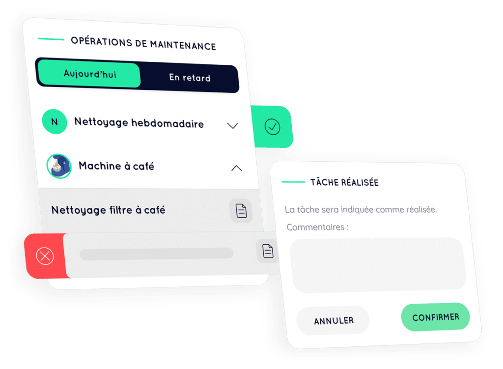 Chaque opération est horodatée et enregistrée dans votre tableau de bord pour un gain d’efficacité. Plus d’oubli possible, notre application de GMAO s’occupe de prévenir vos équipes par email ou SMS en cas d’anomalies ou de tâches non réalisées.